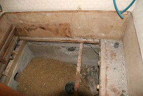 | 工事前 | 床板を撤去、断熱材を敷いています | 構造用合板を張り、フロアーを張っています | ||