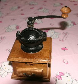 | 左が最近まで使っていた、コーヒーミルです。右が新しい電動コーヒーミル です。どちらも、豆を挽くタイプのミルです。(2008年10月現在) |