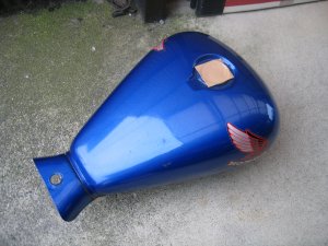 前オーナーが、ラッカースプレーで全塗したガソリンタンク