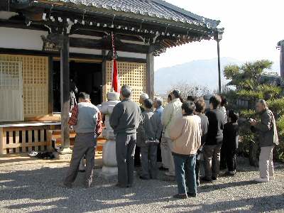 | 大澤が、字で管理している聖徳太子ゆかりの地蔵院本堂の修復工事が完成し、十一月十七日、落慶を祝う入佛式が行われました。 大澤の地蔵院は西暦六○六年に、聖徳太子が百済寺へ向かわれる途中、この地で澤の中から地蔵尊を掘り出され、寺を建立したのが始まりだと伝えられています。 現在の本堂は、今から百六十年前の天保十三年に完成したと記録されていますが、老朽化が激しくなったため、区の総会で修復することを決め、今年の六月から工事に入っていました。 この本堂は、今年の二月に国の登録文化財に指定されたことから、県教育委員会や、町の歴史民俗資料館のの指導を受けながら、工事を進めました。 入佛式には、字の人たち約百二十人が参加して法要を行い、工事の完成を祝いました。 式に出席した歴史民俗資料館の森容子氏(学芸員)は、「大澤のみなさんが、文化修復の手順に従って工事を進めることを決められたのは、大澤の文化性の高さを示すものであり、この平成の大修理の精神を後世に伝えていってほしい」とあいさつされました。 |