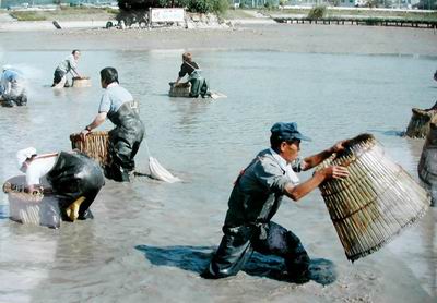 | 説明 オオギという竹製の漁具を使った大澤の「総つかみ」行事は、江戸時代から4年毎に行われていました。この総つかみは、字民が総出で魚をつかむという楽しみの他に、溜め池の水をかき回すことによって、底に貯まった泥を流すという役割も果たしていました。 昭和30年代の終わり頃から、この行事は中断してしまいましたが、平成10年10月に、大澤の郷づくり活動の一環として、31年ぶりに復活させました。ところが、この行事がNHKのテレビニュースなどで紹介されて注目を集め、昨年9月には湖東町のイベントとして「西堀栄三郎記念・探検の殿堂」の前の溜池でオオギ漁の再現をしたり、昨年11月の世界湖沼会議には、「淳史くんのため池たんけん」という劇に仕立てて大澤の住民20人が参加するなどしました。 今回の総つかみは、大澤として4年ぶりの実施となりますが、大勢の人に来ていただいて、オオギ漁を楽しんでいただき、交流を図りたいと考えています。 |