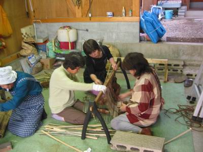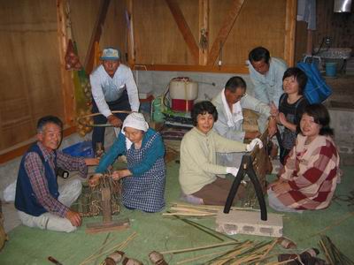 | 9月28日 昔ながらの俵編み機を使いオオギの胴の部分を作成をしています。(3番組) |